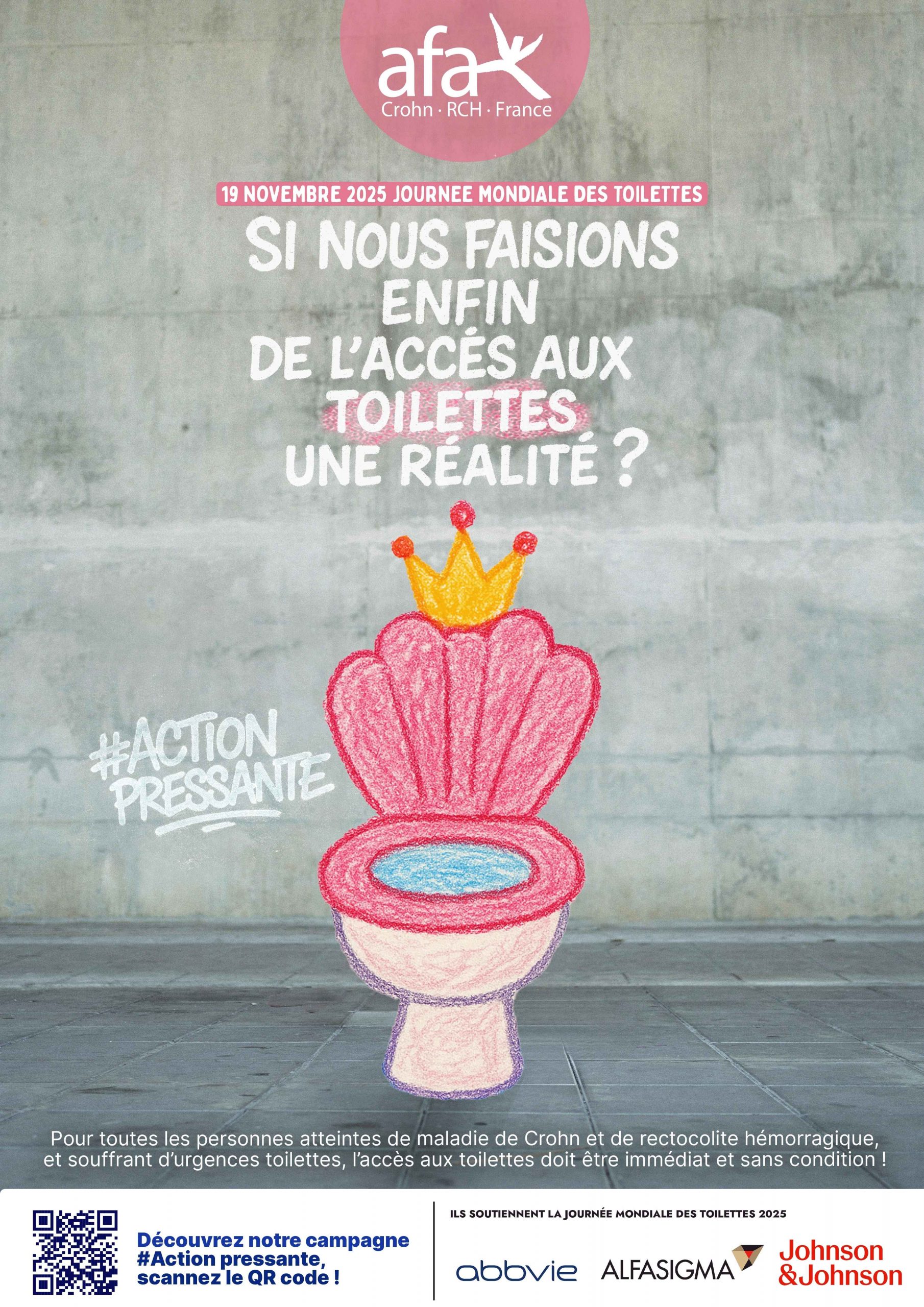 À l’occasion de la Journée mondiale des Toilettes 2025, l’association afa Crohn RCH France poursuit son plaidoyer ‘Action Pressante’ et interpelle les députés et sénateurs avec un projet de proposition de loi visant à créer une Carte Urgence Toilettes officielle, délivrée par l’État. Un dispositif vital pour les 315 000 Français atteints de maladies inflammatoires chroniques de l’intestin (MICI), pour qui l’accès aux toilettes en urgence est une question de dignité et de santé publique.