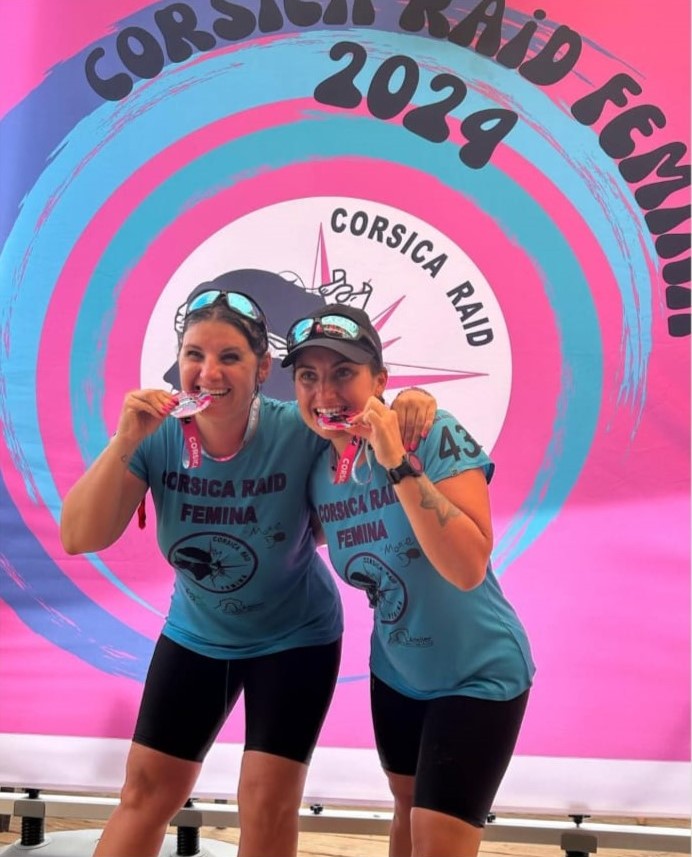 De gauche à droite : Cécilia et Morgane à l'arrivée de la Corsica Raid Femina