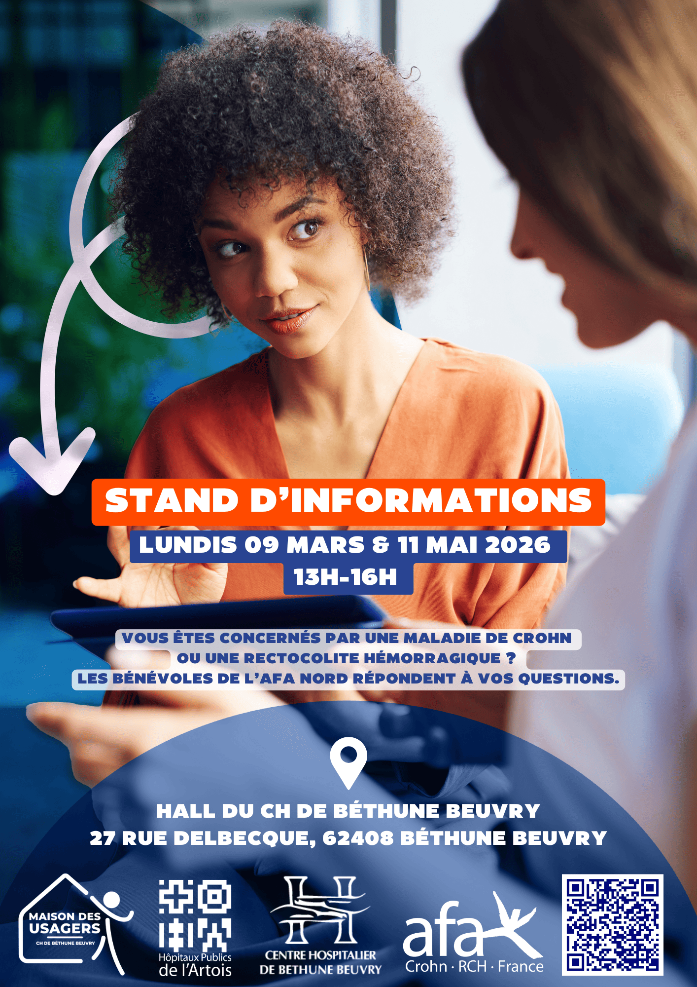 Malade ou proche de malade, les bénévoles de l’afa Hauts-de-France répondent à vos questions lors d’un stand d’informations au sein du Centre hospitalier de Béthune.